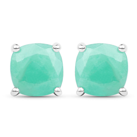 6.60 Carat Emerald, Glass Filled Ruby and Glass Filled Sapphire .925 Sterling Silver Earrings