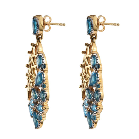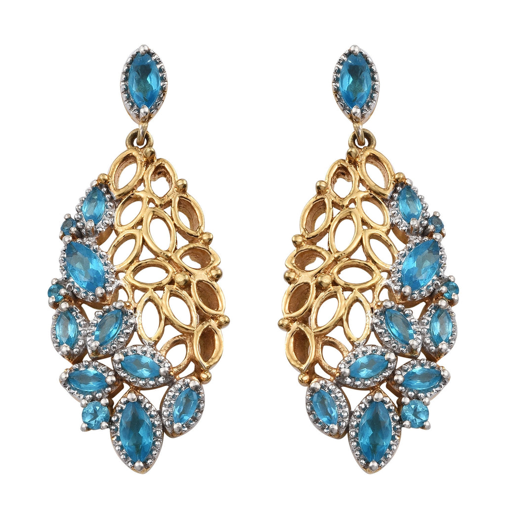 Apatite Earrings, Sterling Silver Polished With Yellow Gold Rhodium.