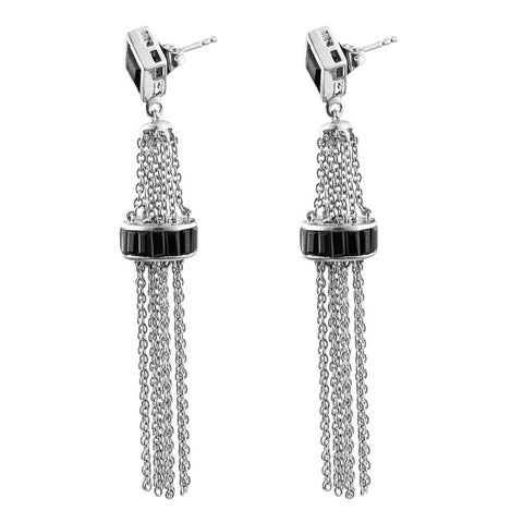 Black Spinel Chandelier Earrings Set In Rhodium