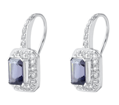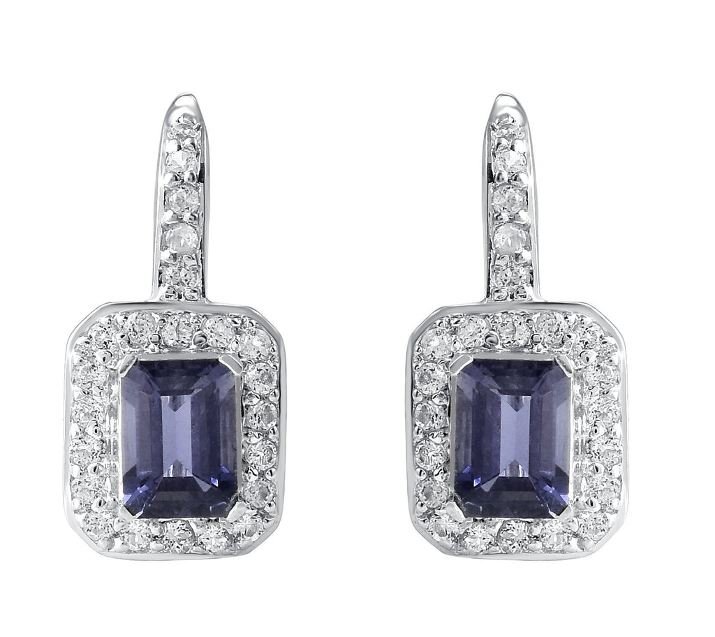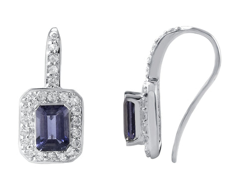 Suspended From Sleekly Designed Rhodium, These Intensely Hued Iolite Gemstones Are Embellished Gracefully With An Envelope Of White Topaz Gemstones. Set Sturdily In Rhodium, These Earrings Revel In Their Superior Subtlety.