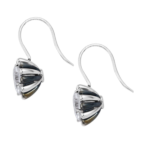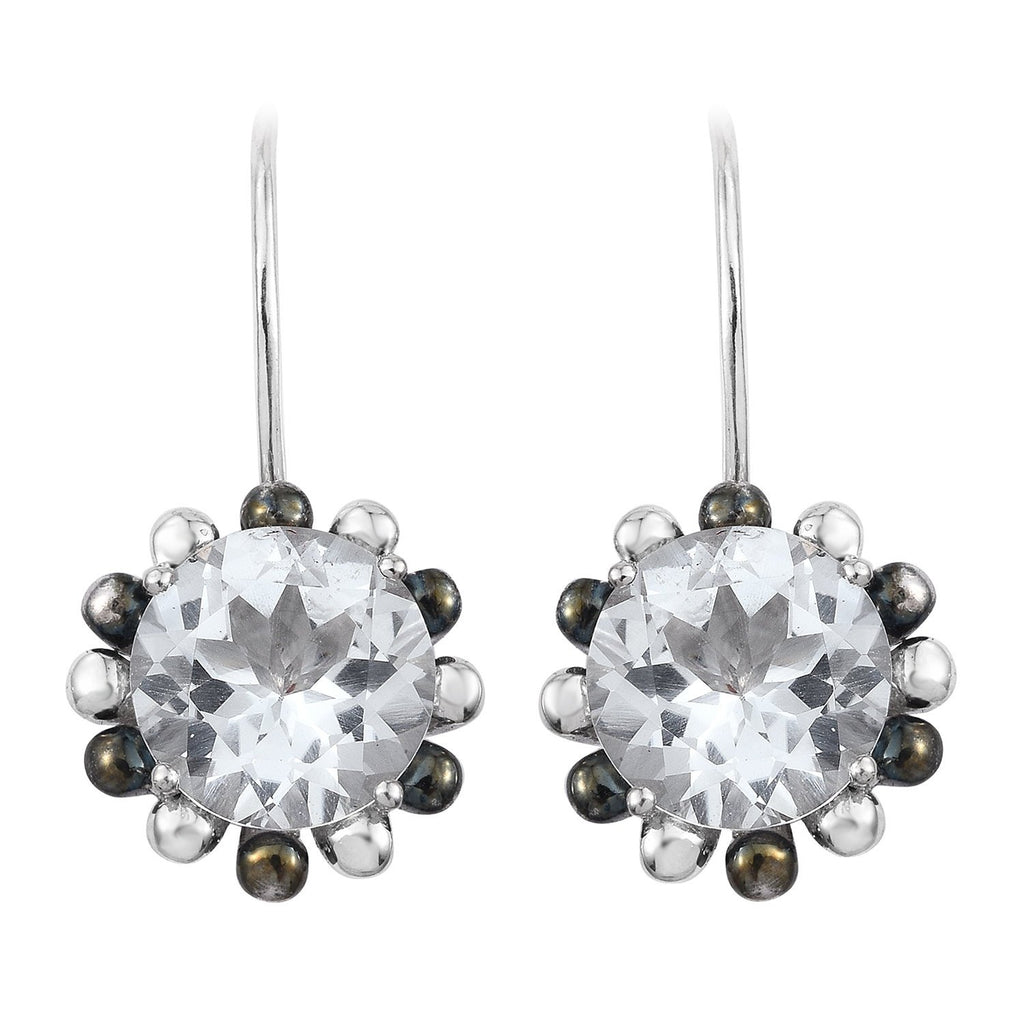 Jeweled With Polished White Topaz, Rhodium Plated Sterling Silver Earring.