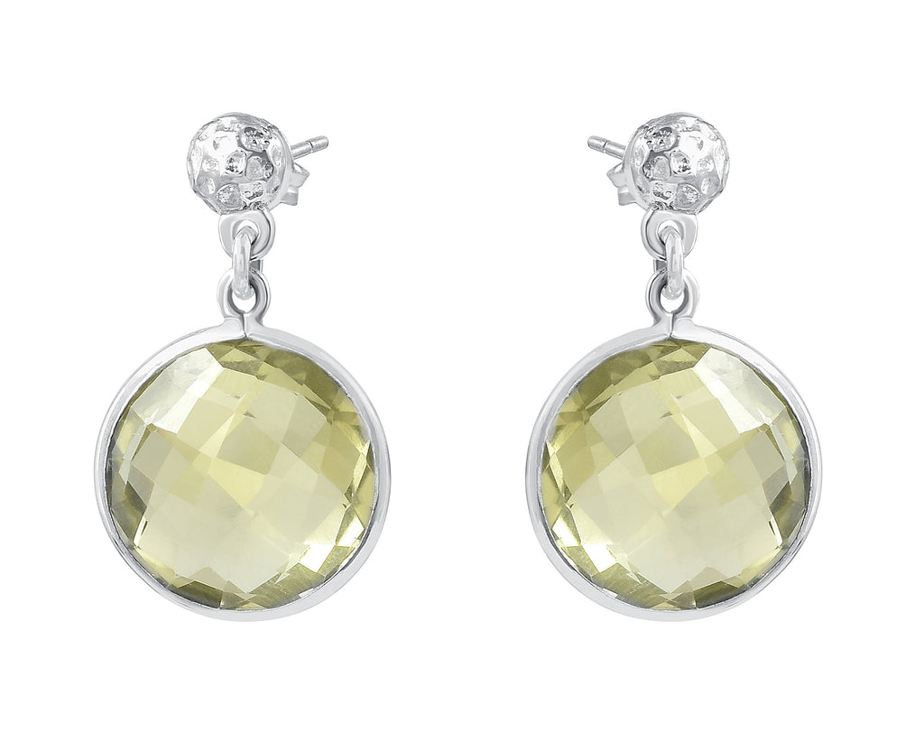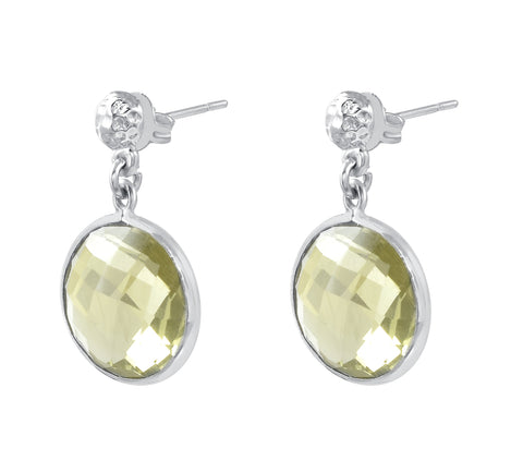Lemon Quartz Drop Sterling Silver Earrings Set In Rhodium