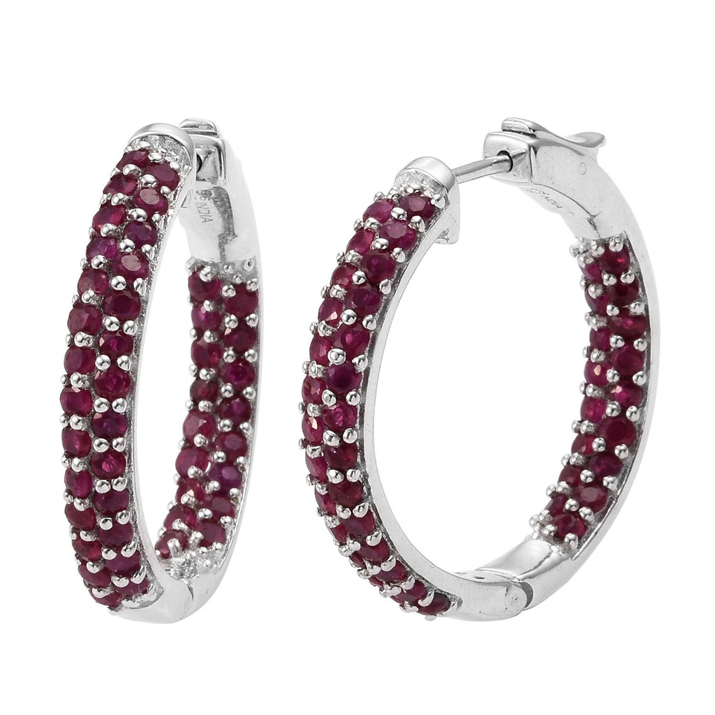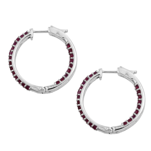 Let The Hue Of Polished Ruby Dazzle Up Your Persona. This Rhodium Plated Sterling Silver Loop Style Earring Is Will Lighten Up Your Personality Instantly.