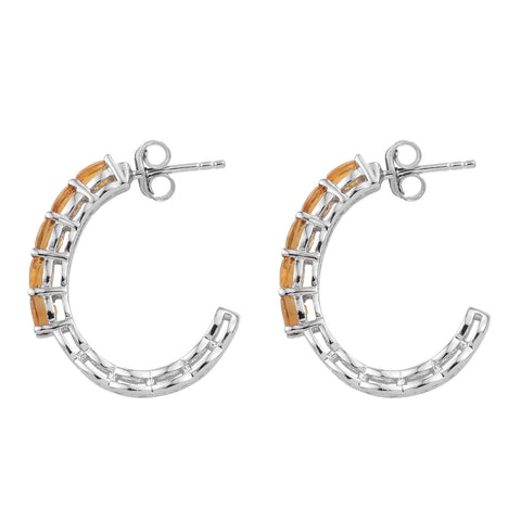 Loop Style Sterling Silver Rhodium Plated Earrings With Citrine Stones