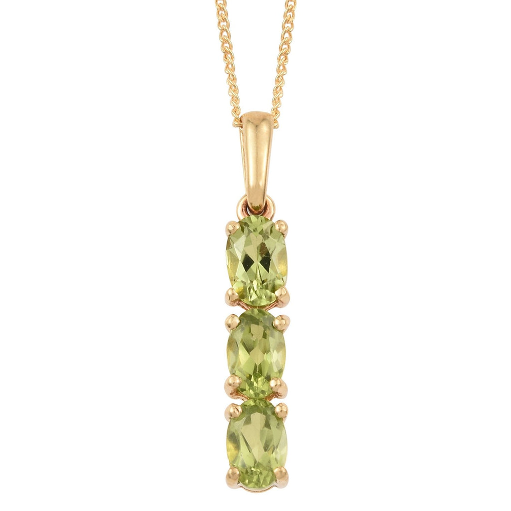 Three Gorgeous Oval Shaped Olive Green Hued Stones Join Together To Form A Remarkably Stunning Pendant. Prong Set And Sculpted In Sterling Silver, This Yellow Gold Rhodium Finish Pendant Is Glamorously Alluring.