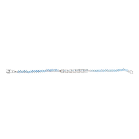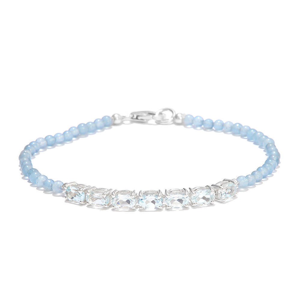 This Rhodium Plated Sterling Silver Bracelet Comes With Polished Skyblue Topaz In Arranged In A Liner Pattern Which Goes Well With All Your Looks.