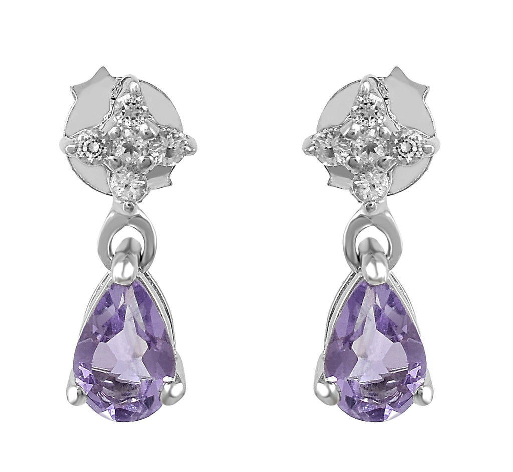 This Pair Of Earrings Features Amethyst Teardrops Suspended From Intricately Designed White Topaz Fixtures That Are Skillfully Crafted To Perfection, Engraved With Graceful Carvings Displaying Unparalleled Expertise. Transcending Its Beauty Is The Reflective Quality Of Rhodium. This Pair Perfectly Amalgamates Classic And Modern Styles, Lending Itself A Gorgeously Unique Appeal