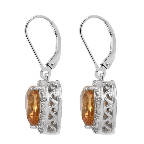 Everybody Else Will Become Your Admirer When You Will Adorn Yourself With This Rhodium Plated Sterling Silver Earring. The Amazing Sheen Fo Polished Citrine, And Natural White Zircon Is The Main Point Of Attraction.