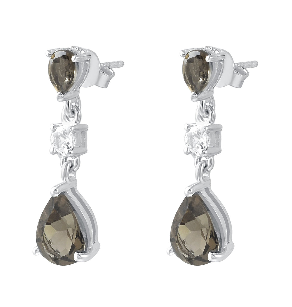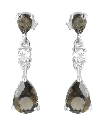 This Magnificent Pair Of Drop Earrings Features Two Beautiful Smoky Quartz Stones Joined Intricately And Embellished With White Topaz In The Centre, Creating A Masterpiece Of Subtle Style. Set In Sturdy Rhodium, This Pair Is A Must Have.