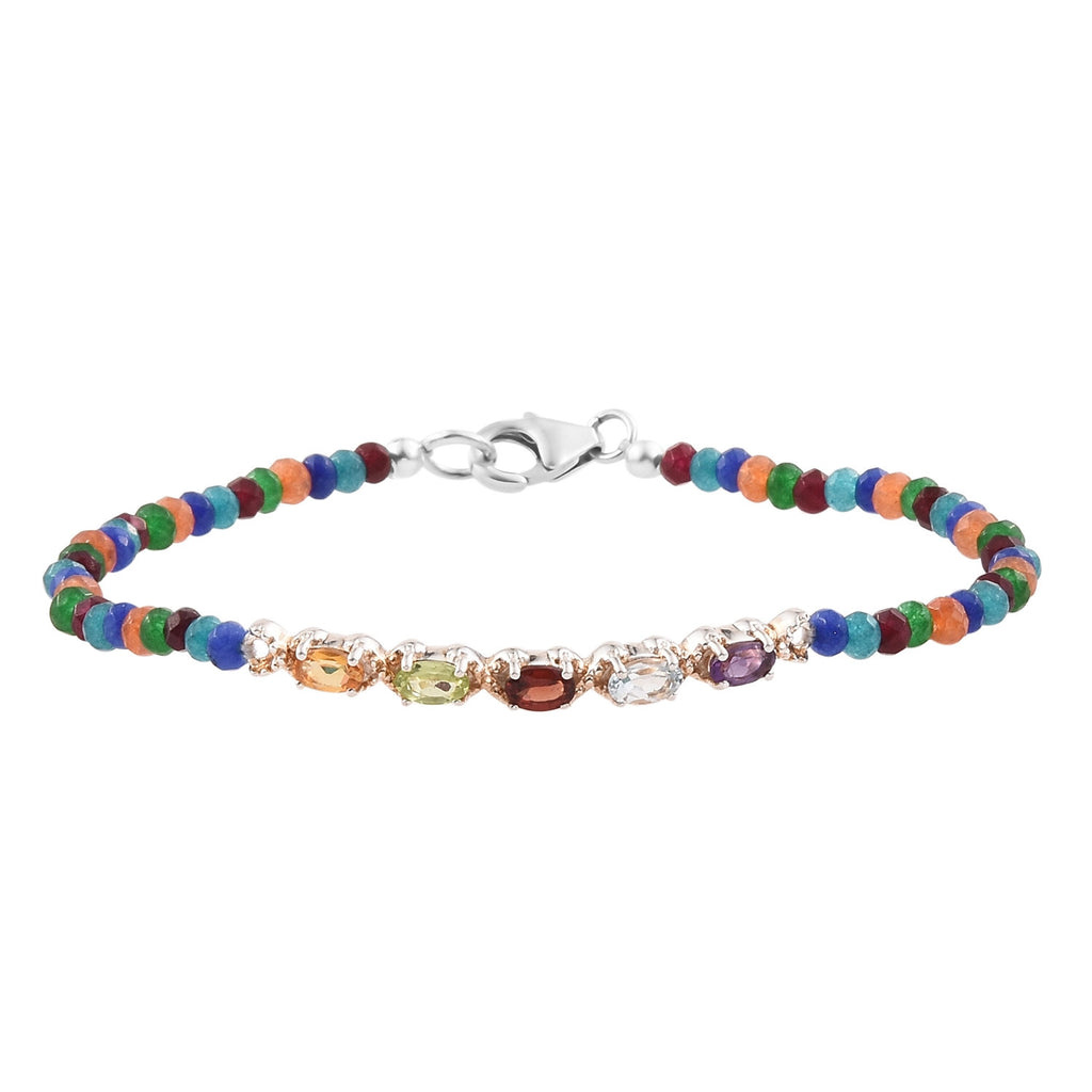 Count On This Sterling Silver Bracelet With Rhodium Plating To Look Stunning. The Polished African Amethyst, Citrine, Peridot, Red Garnet, And Skyblue Topaz Gemstones Look Striking.