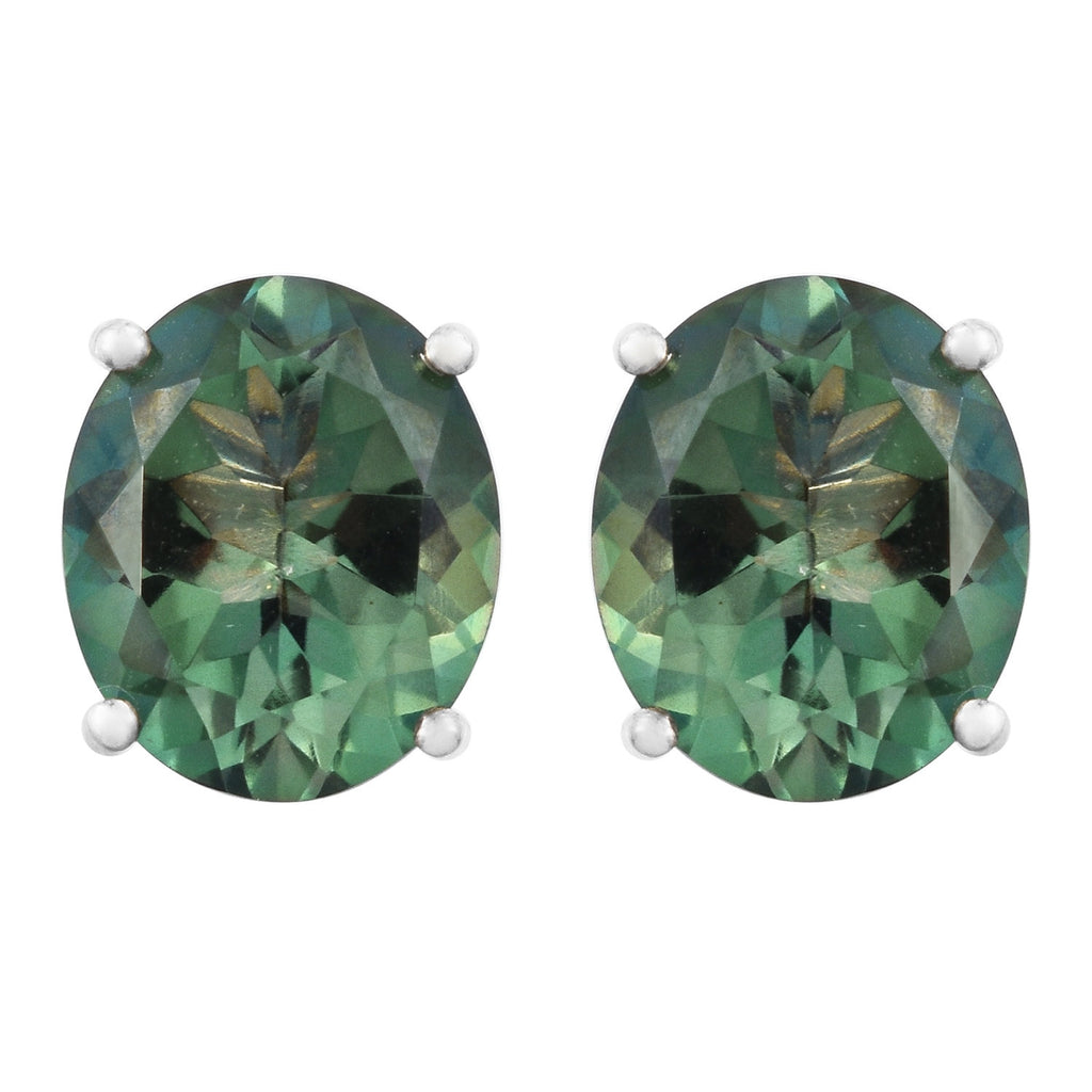 Studded Sterling Silver Earring With Flawless Mystic Chrome Quartz In A Rhodium Plated Sterling Silver Base.