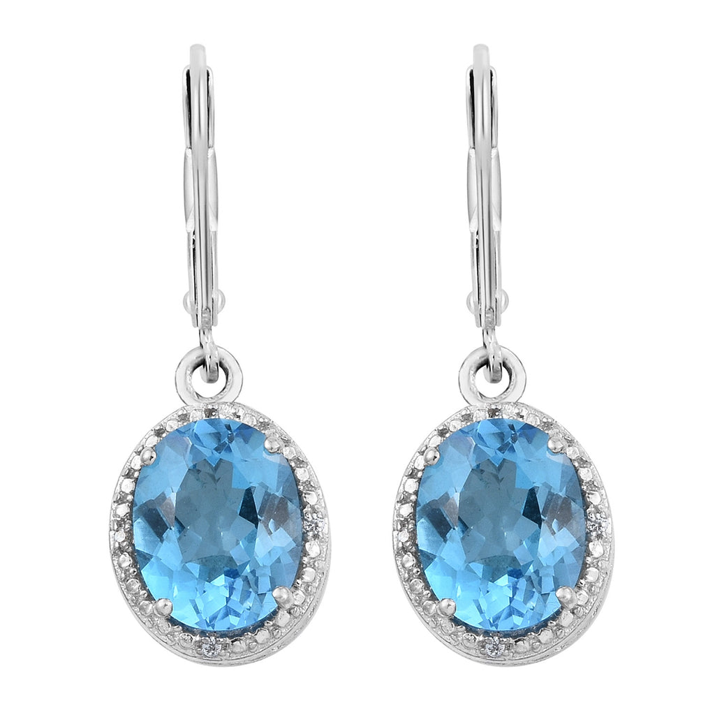 Studded Swiss Blue Topaz And Natural White Zircon Rhodium Plated Sterling Silver Drop Earring