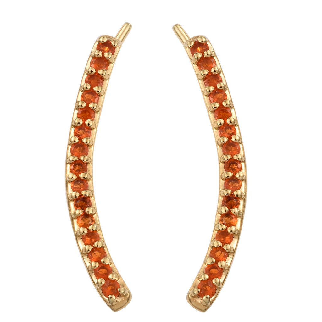 Stylish Yellow Gold Rhodium Plated Sterling Silver Earring Adorned With Fire Opal