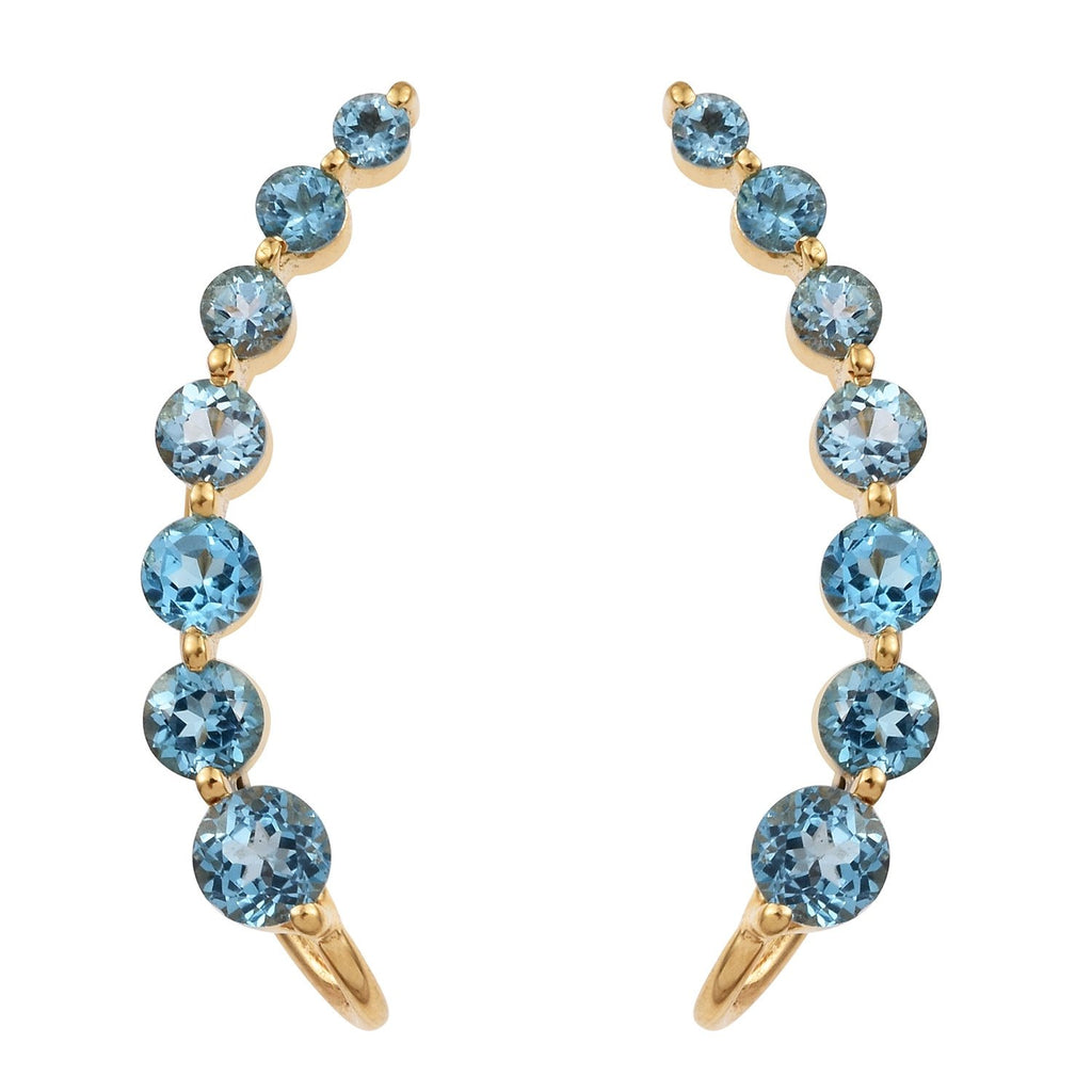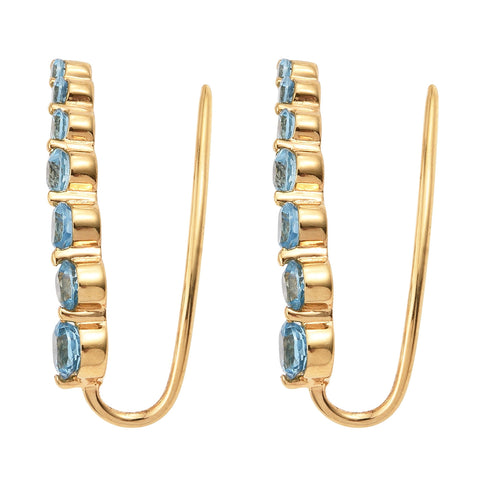 You Can Wear These Sterling Silver Earrings Regularly. These Earrings Comes In Perfect Clear Blue Color Which Captivate The Attention Of All. Curved In Arch-Shape, These Earrings Have Multiple Swiss Blue Topaz Gems Of Different Sizes To Beautify Your Looks.