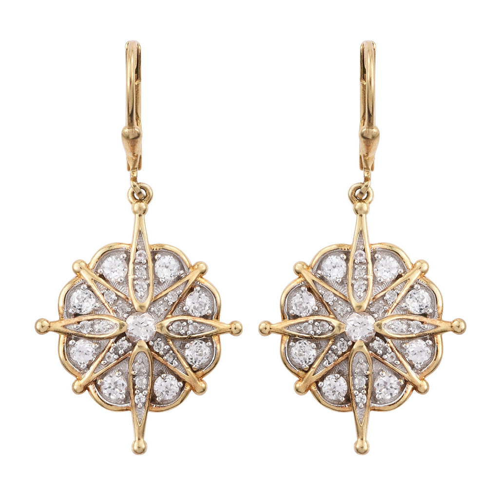 Let The World See Your True Brilliance With This Stunning Yellow Gold Overlay Plated Sterling Silver Earring Well-Adorned With Polished Natural White Zircon.