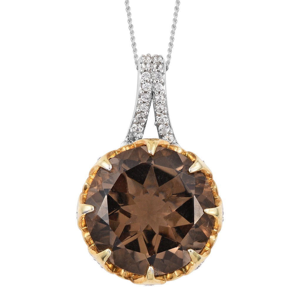 Graced With Polished Smoky Quartz And Natural White Zircon Gemstones, This Yellow Gold Pan Plated Sterling Silver Pendant Is A Must Buy For Every Stylish Diva.