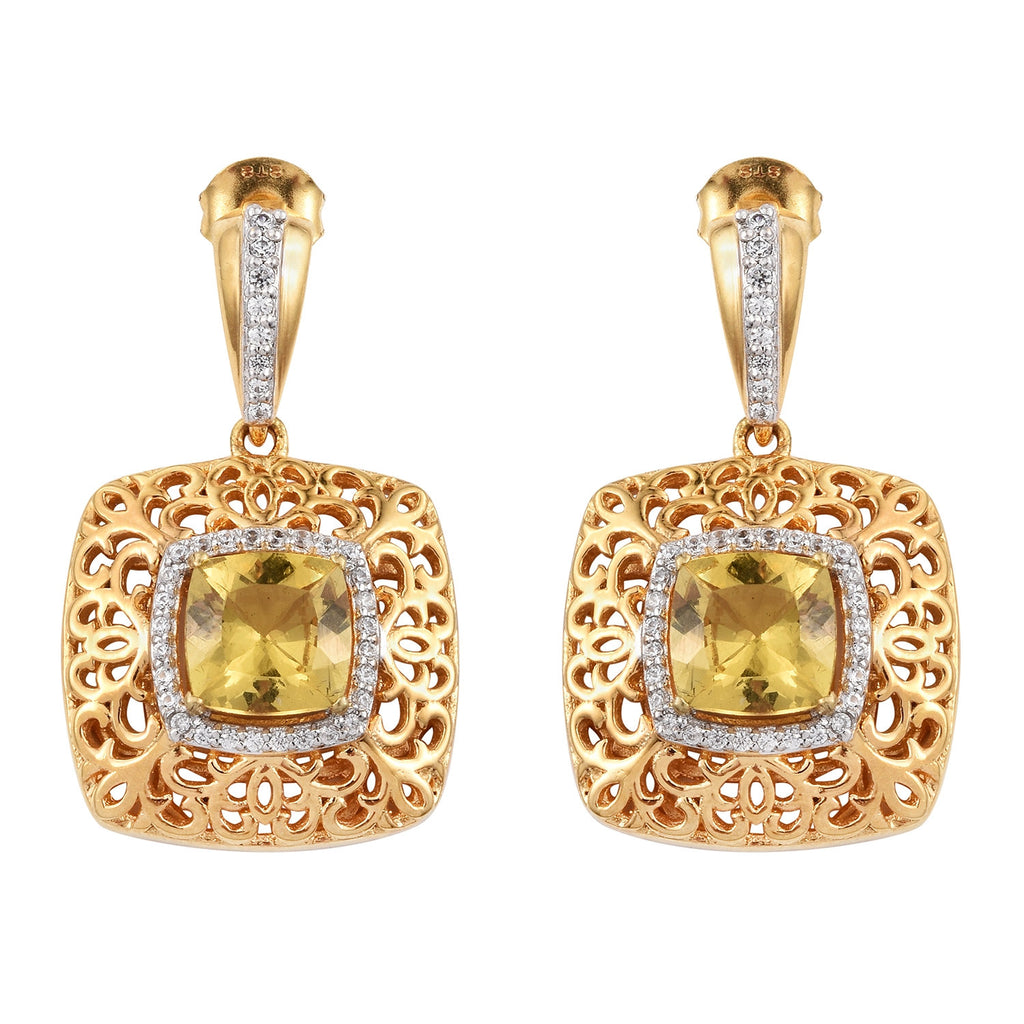 The Halo Pattern All Over Adorned With A Sparkling Golden Apatite In The Middle And Natural White Zircon On The Rim Is All Set To Steal Your Heart. This Yellow Gold Sterling Silver Earring Is What Every Stylish Chic Should Own.