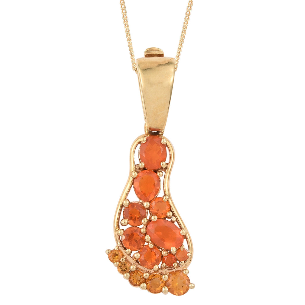 The Amazing Crafting Of Polished Citrine And Fire Opal Gemstones In A Yellow Gold Rhodium Plated Sterling Silver Pendant Is What You Should Own When You Want To Zest Up Your Personality With Unmatched Sheen.